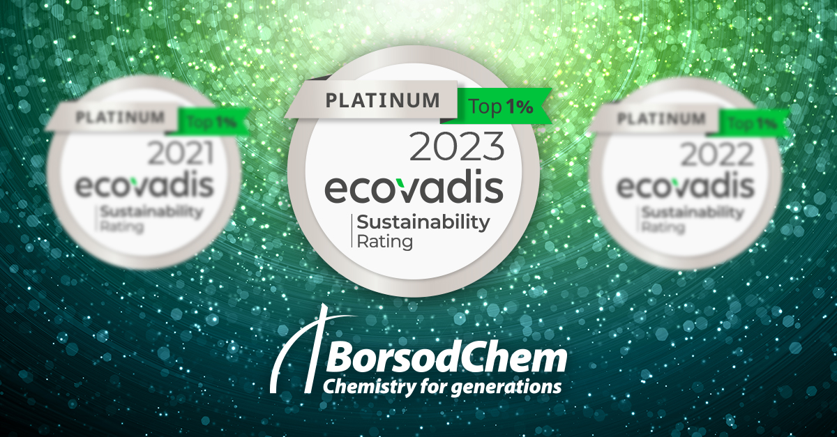 Our efforts for sustainable development have resulted in an impressive score of 80 out of 100, which is a reflection of our uncompromising adherence to sustainable business practices. The Platinum medal is the highest recognition that EcoVadis awards, and signifies that BorsodChem is among the top 1% of companies assessed in our industry in terms of sustainability and corporate responsibility. We are grateful to all the departments and employees for their consistent dedication towards sustainability.